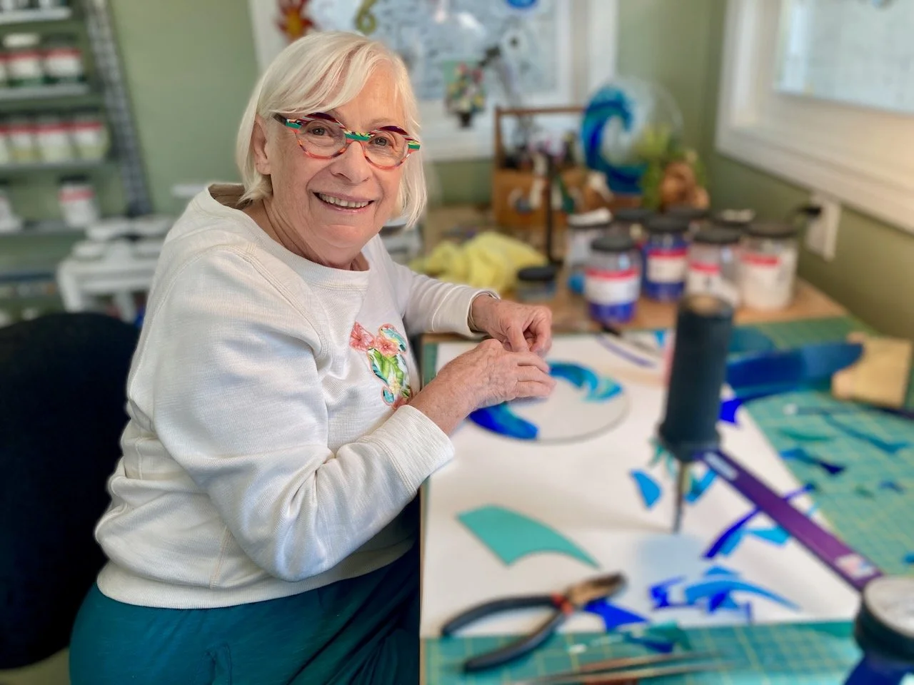 Sadly, Karen nan unexpectedly passed away in February 2024. Her vibrant personality and artistry brought joy and inspiration to those who encountered her work, whether through the radiant colors that illuminated a window, a beautifully crafted dichroic glass pendant, or a one-of-a-kind piece created in one of her classes. She left a legacy that lives on in each unique piece she created, treasured by her family, friends, and the many admirers of her work. Her passing leaves a void in the artistic community, but her spirit shines brightly in every creation she left behind—a lasting testament to her love for glass and her gift for bringing happiness and inspiration to others.